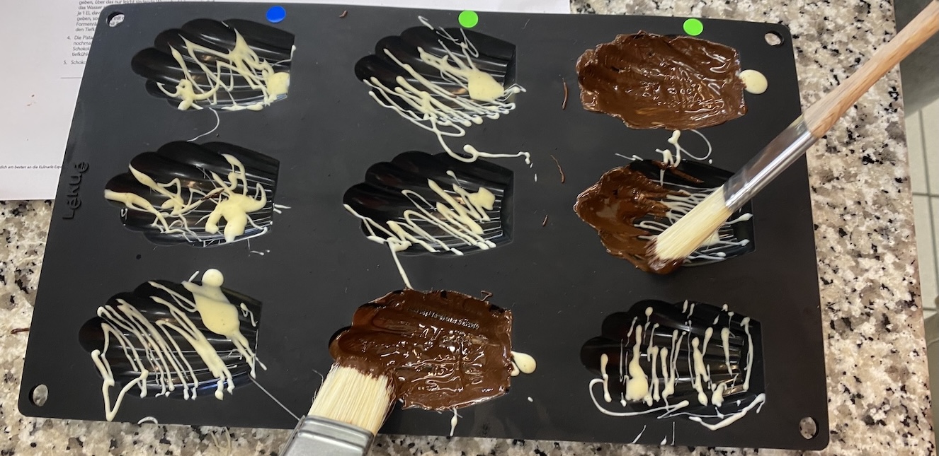 Die Schüler:innen des Freifachs Backen und Kochen haben sich an die Zubereitung von Dubaischokolade gewagt. Dank Sorgfalt, Präzision und einer Menge Motivation kann sich das Resultat sehen lassen.